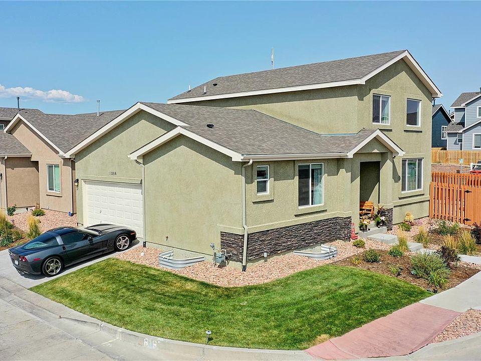 Immaculate 3-bed, 3-bath, 2 car garage, corner lot in the Desirable Courtyards at Woodmen Hills! This gorgeous and spacious two story home is a true pride of ownership. Built in 2017, this home is like new! Loft on upper level that can be converted into 4th bedroom if needed. Enjoy the outdoors maintenance free with xeriscape landscaping in the front and back. The HOA manages front yard maintenance, snow removal, and trash. The fully fenced backyard backs to community park and visitor parking. Beautiful modern kitchen with granite counter tops, island, all appliances included and a walkout onto the patio. Short driving distance from the city! Close to parks, trails, and shopping. The Water District gives you access to a fitness center, pools, and maintains parks and trails.