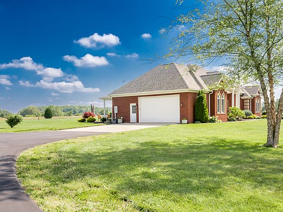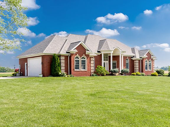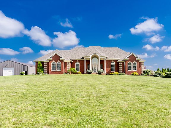 Welcome to your dream retreat nestled on 5 pristine acres of lush landscape! This exquisite property boasts an elegant all-brick home with charming custom touches throughout. Step inside to discover a spacious 4-bedroom, 3-full bath sanctuary where luxury meets comfort. The main level greets you with a cozy living room adorned with a fireplace, perfect for gatherings. Revel in the architectural beauty of the trey ceiling and admire the craftsmanship of custom built-ins and bookcases. The adjacent kitchen offers a seamless flow for entertaining, while the attached garage ensures convenience. Venture downstairs to the finished walk-out basement, where two additional rooms await-currently utilized as a 5th bedroom and workout area. Marvel at the custom built-ins, wooden beamed tongue and groove ceiling, and indulge in the entertainment haven featuring a media room with an electric fireplace and a recreational room with a pool table, all designed for ultimate relaxation. Updates abound with a Newer Roof & New HVAC System. Outside, bask in the sun by the sparkling in-ground swimming pool, complete with a cover and fenced area for safety and privacy. The heated 54x90 pole barn with a concrete floor is a versatile space for hobbies or storage, complemented by a wood boiler providing efficient heating for the barn and backup heating for the house, offering comfort and savings. Don't miss the opportunity to own this extraordinary property where every detail has been thoughtfully curated to offer luxury, convenience, and serenity. Schedule your private tour today and envision a life of tranquility in this captivating estate!