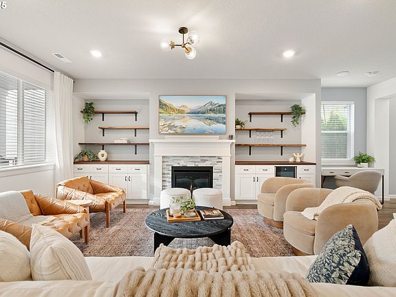 - Features: Builtin Features, Family Room Kitchen Combo, Fireplace, Engineered Hardwood