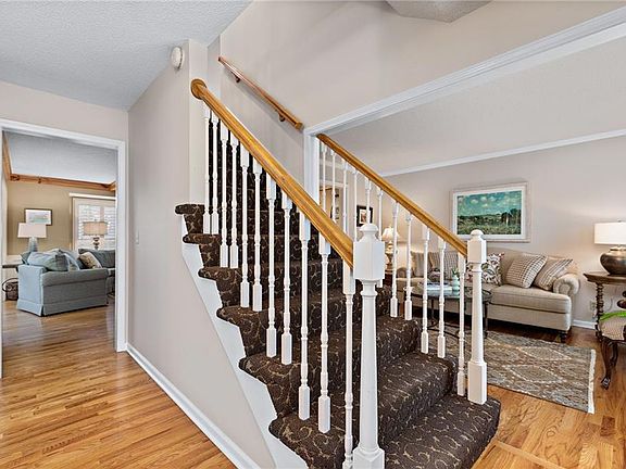 ALL OFFERS DUE TUES 3/21 AT 7:00 PM. Nestled in a friendly & charming neighborhood, this stunning home is a perfect combination of elegance &comfort. With well-manicured lawns & mature trees, the area is filled w/laughter & positivity. The convenience of being w/in walking distance to top-rated schools, shopping, & restaurants is an added bonus. Upon entering, you will immediately appreciate the understated elegance that flows throughout this well-maintained home. HDWD floors adorn the main LVL, which features a den w/crown molding & plantation shutters & a formal Din RM m w/a chair rail, traditional chandelier, & more plantation shutters. The hallway between the Din RM & kitchen leads to a 1/2 bath & laundry/mud RM that provides access to the garage. The heart of this home is the stunning kitchen w/granite countertops, under-mount task lighting, SS appl, & a long BKFST peninsula. The BKFST area boasts a vault CLG, wood blinds, & French doors leading to the pergola-covered paver patio, ideal for hosting gatherings & enjoying al fresco dining in the fenced backyard. The open GT RM features expansive windows adorned w/plantation shutters, allowing natural light to flood the space. Cozy up to the gas log masonry FP, offset w/decorative shelves, & enjoy a peaceful night in w/family & friends. Upstairs, plush carpet leads to the BRs. The owner's suite features a spacious en suite bath w/a granite DBL vanity, soaker tub, shower, & walk-in closet w/mirrored doors. An inviting sitting RM/hearth area w/a tile-surround FP flanked w/ decorative bookcases adjoins the owner's suite. 3 additional BRs, each w/plush carpet & blinds, share the hall bath, which also features a granite BL vanity & a shower/tub combination. The finished lower level is perfect for family fun & entertaining. There you'll find a wonderful family RM w/an expansive wet bar, an exercise RM, a full bath, & plenty of storage. Don't miss out on the opportunity to make this your dream home.