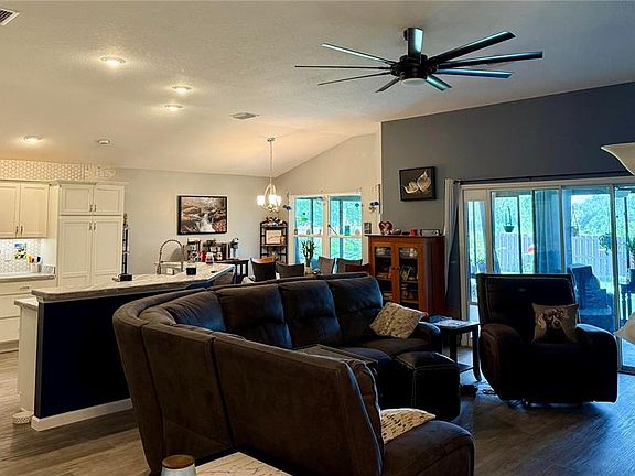 This charming home features a spacious layout with four bedrooms and two bathrooms. The open-concept living area boasts abundant natural light, seamlessly connecting to a modern kitchen, equipped with all updated stainless steel appliances, including an LG double oven with a Convection oven, and ample cabinetry. All light fixtures and fans have been updated. The lanai, previously just screened in, has had hurricane rated windows added, providing not only extra protection during the FL storms, but is also a great retreat when the weather cools down. The property has a well-manicured yard with all new landscaping. The recently extended, fully fenced in backyard, offers a peaceful escape, as there is only a field abutting the backyard to this home. There's been a patio added, perfect for outdoor enjoyment and entertaining, with plenty of room for a pool. The back yard has also been set up with an auto-mower, making yard maintenance a breeze. The two-car garage provides not only additional parking and storage, it also has had an EV charger added for conveniently charging your electric car or golf cart at home. (Giving you an additional credit on your power bill). The home also had a solar powered attic fan installed as well as solar panels added, making another nice cut in the electric bill! Situated in Oxford Oaks, a welcoming neighborhood, with a community pool, playground, as well as basketball, tennis, and pickleball courts. Conveniently located less than 5 minutes to shopping, restaurants, banks, the post office, and so much more. *There is no Bond on this property.*