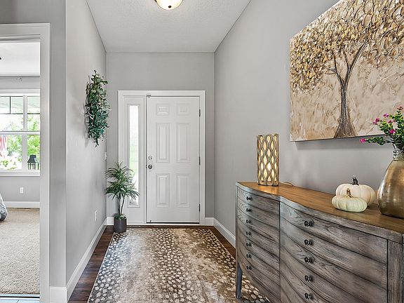This stunning detached townhome is located on one of the largest lots in the development with views of the many trees and the seasonal retention pond. Walking in you are drawn to the cozy stone, gas fireplace in the Great Room. Your gourmet Kitchen features granite countertops and lots of custom cabinetry. The chef will love the high-end, stainless-steel appliances. Enjoy panoramic countryside views from the Sun Porch. A French door leads you out to the maintenance-free deck. Your luxurious Master Suite has a private bath with granite-topped, double vanity and stone-tiled shower. Another bedroom is on the main level as well as a full bath. The huge walkout Family Room has a wet bar with built-in cabinetry, granite counter, and stainless-steel appliances. There is plenty of room for a couple of game tables in the spacious Rec Room. The 3rd bedroom is here as well as a 3/4 bath. Relax in the 5 person hot tub on the patio! The insulated garage is pre-wired for a heater too!
