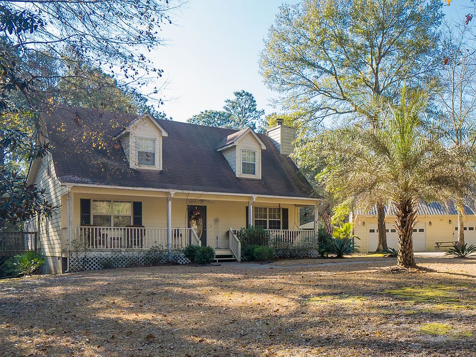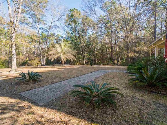 Looking for privacy and easy access to everything Baldwin county has to offer. This home is for you. Situated on 3.3 acres. Gated driveway, beautiful treed property with bass pond, Sandy creek runs through rear of the property. Three porches adorn this beautiful country cottage two are covered while the third overlooks natural land and sandy creek. Inside features include real oak hardwood floors, Custom sandstone fireplace in the great room with hearth and hardwood mantle harvested from your own land. 2nd wood fireplace in living room. Remote controlled ceiling fans throughout. Oversized half bath. Double vanity in master bathroom, featuring garden tub and separate shower. Large center eat in kitchen featuring double oven. Storage, Storage, Storage, if you need it this property has it. 2 a/c units to keep your homes climate to just the right temperature. Don't miss out on the serene and natural light that shines through the large picture windows in the great room. 4 car garage is 48x24 featuring window a/c and 2 ceiling fans. A 35x35 ft pole barn with metal roof, approx. height clearance of 11.5ft at peak. 12x16 potting shed with single garage attached, with French doors opening to a 12x12 screened in porch. 17x 8 screened in Tiki bar with 2 ceiling fans attached to large covered porch including private outdoor shower and utility sink. 10x12 metal utility shed. As well as a 8x23ft covered wood shed/toy shed.