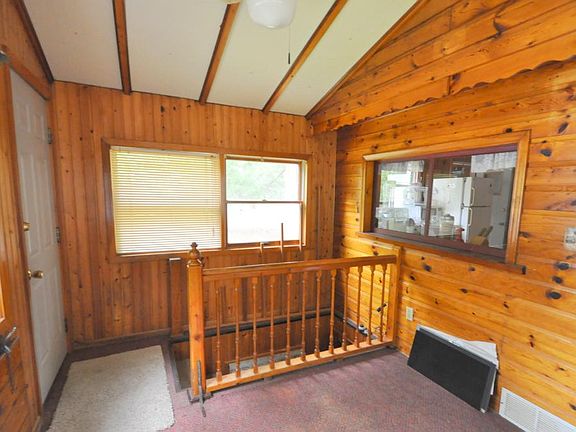 You will enjoy this 2 bedroom 1 bath year round cabin on Upper South Long Lake, Home features open floor plan, vaulted ceiling, tongue and groove knotty pine interior, front porch, full basement, 2 car detached garage and paved driveway. Property has 60 feet of nice sand lake bottom and anglers can expect to catch Largemouth Bass, Walleye, Northerns, along with Crappies, Sunnies, and Perch.