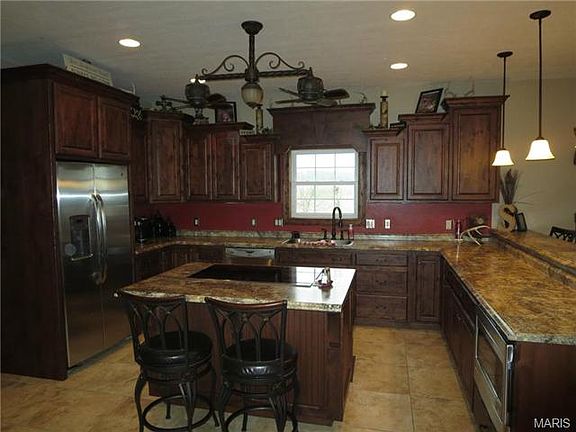 Absolutely beautiful like new 4 bedroom 3.5 bathroom home in the country side with privacy and the best of views sitting on 7.68 acres m/l. This home has space and all the custom features such as beautiful wood work, lots of large windows, massive front foyer, a stunning balcony and a huge kitchen that has gorgeous custom cabinetry a center island, double oven, large snack bar and a walk in pantry. There is a formal dining room, sitting room, and a spacious living room with huge ceilings. Over sized laundry room and a mud room off of the garage. The master suite is on the main level having vaulted ceilings and access to the covered front porch,and the bathroom is awesome having a double vanity, beautiful corner jetted tub, a walk in tiled shower and a huge walk in closet. The upstairs features 3 bedrooms with a Jack & Jill bathroom connecting two of them, another family room & sitting area with views from the balcony. There is a full basement with a safe room bathroom & garage too.
