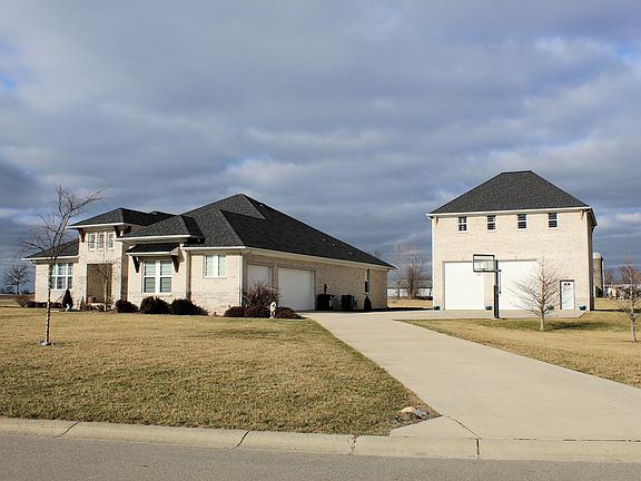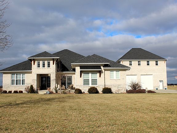 Welcome to your dream retreat in the heart of a serene rural neighborhood! This custom-built home offers the perfect blend of country living & modern convenience. Step into this stunning home where the lines between kitchen, living room, & dining room blur, creating a seamless open concept that's perfect for entertaining & family gatherings. You will enjoy preparing meals & entertaining in your gourmet kitchen complete with ample counter & cabinet space, gleaming granite countertops, stainless appliances & a large pantry for all your storage needs. The luxurious primary suite rivals a spa retreat. The bedroom features a tray ceiling & is flooded with natural light from three large windows. The bathroom has separate vanities, large soaking tub, tiled shower, & large walk-in closet. With its spacious layout and carefully chosen design elements, this area offers tranquility & comfort. Every bedroom in this home features its own private bathroom & walk-in closet. Your guests or family members will appreciate the convenience & privacy that comes with their own dedicated spaces, making this home as practical as it is beautiful. The full, unfinished basement with egress windows, 9' ceiling & plumbing rough-in is ready to be transformed based on your personalized wants & needs. For those with a need for extra garage space, the massive detached garage is a standout feature. Boasting 15-foot doors, this space is a car enthusiast's dream, a workshop haven or an ideal spot for a variety of other uses. The unfinished loft above the garage presents an additional opportunity to create a studio, office, or guest space, limited only by your imagination. Situated on a sprawling 2.22 acres, the property offers an outdoor haven with ample room to run & play. Embrace the beauty of rural living & beautiful sunsets year-round while enjoying the freedom to create your own outdoor paradise. Conveniently located near interstate access, wineries, orchard, parks, dining options & golf course