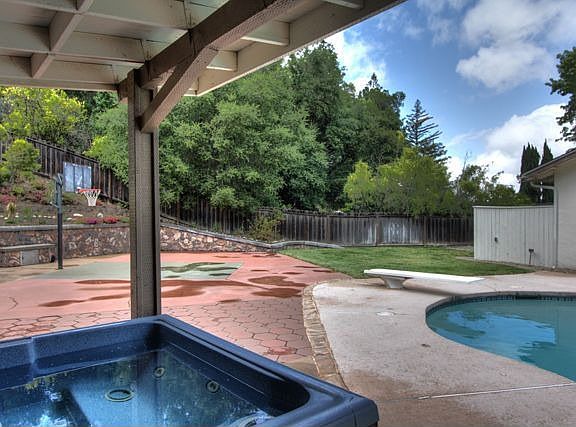This updated and expanded entertainers delight is situated in a desirable neighborhood that features the best of all Walnut Creek has to offer. Within 2 miles to both Walnut Creek & Pleasant Hill Bart Stations as well as to both Interstate 680 and Highway 24. Only 2.5 miles to the heart of Walnut Creeks thriving Broadway Plaza where you will find top rated shopping and dining. Enjoy 12 years of some of California's best schools in the Walnut Creek & Acalanes School Districts! Oversized living room perfect for family fun and leading out to the rear yard that boasts a swimming pool, spa, cabana area, built-in BBQ, basketball court, lawn and steps leading up to a private gazebo with beautiful views of Mt Diablo. Upstairs you will find all the room you need for your dream master bedroom or bonus room. This home is turn-key and a must see! Overview 5 Bedrooms Original floor plan features 4 bedrooms downstairs (including original master bedroom). Upstairs addition boasts a 5th bedroom and large bonus room that could be 2nd master suite with retreat or the 5th bedroom with game room. 3 Full Bathrooms 2 downstairs, 1 upstairs. 2,500 square feet of living space, per owner. 14,450 square foot parcel (1/3 acre), per tax records. Living Areas Fresh paint throughout and all new wall to wall carpeting. 4 panel doors in hallway and new 6 panel closet doors in bedrooms. Large formal living room with recessed lighting and partial views. Updated kitchen features maple cabinets, Corian countertops, laminate flooring, electric stovetop, Bosch dishwasher, built-in double oven, built-in work station. Dining area with laminate flooring & ceiling fan. Expanded family room provides for a variety of furniture options and features a gas fireplace with blower, raised hearth and wood mantel; wiring for surround sound, recessed lighting & storage under stairs. Upstairs addition features a large bonus room plus a separate bedroom with an attached full bath and walk-in closet. This wonderful add-on can serve as a large 2nd master suite with separate office/retreat or as a 5th bedroom with bonus area. Sliding glass doors lead to a deck overlooking the pool and featuring Trex boards and a separate stair case that leads to the backyard. Attic storage access in 5th bedroom. New tile flooring in downstairs bathrooms. Downstairs master bedroom with makeup vanity and ceiling fan. Exterior & Other Features Composition shingle roof (2000). Family Room & Upstairs Addition (2000). Central vacuum. Dual pane windows throughout. 2 Blocks to Sousa Drive entrance of the Acalanes Ridge Open Space. Retaining wall with rock face, exposed aggregate cap, waterfall and accent lighting for night time entertaining. In-ground gunite pool with diving board, automatic pool sweep and solar heating. Separate cabana area with spa. Steps leading up well manicured hill to Gazebo w/ views of Mt Diablo. Yard also features: Basketball court with adjustable height hoop, lawn areas, oversized side yard, exterior lighting, built-in BBQ & front porch. 2 car attached garage with laundry hookups.