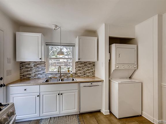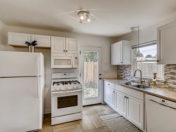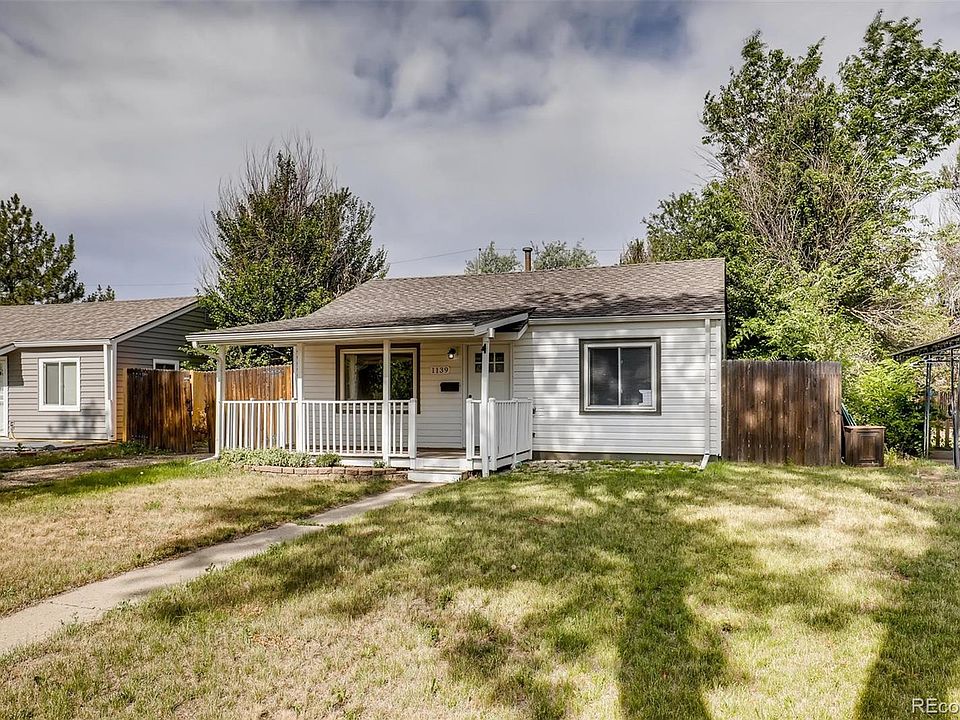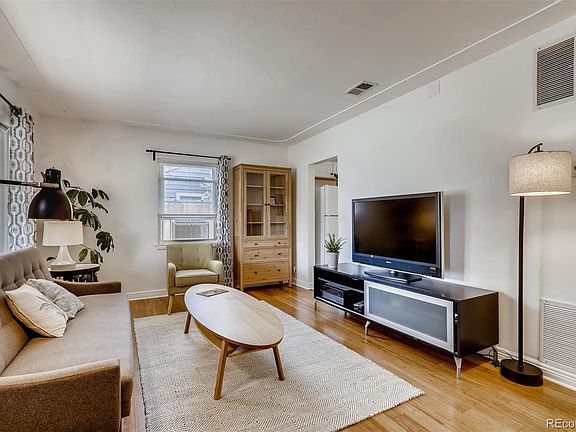 Charm Galore!! Walk in to this light filled living room with beautiful hardwood floors. The updated kitchen is perfect for a home chef with lots of cabinets for storage and room for a table, perfect for that person keeping the chef company or just hanging out. Nice size 2 bedrooms with ceiling fans providing white noise and a cooling nights sleep. Did you see that huge fenced-in backyard! Imagine the BBQ's and parties, set up a Corn Hole game and invite all your family and friends. This is a Great Neighborhood, close to Lowry Town Center with Restaurants, Shops and a Beer Gardens. Enjoy walking your dog to the park up the street. With easy access to 225, I-70, University Health Center, VA Hospital and the airport. This is the home for you! Do you like the staging furniture, it's negotiable in the sale of the home.