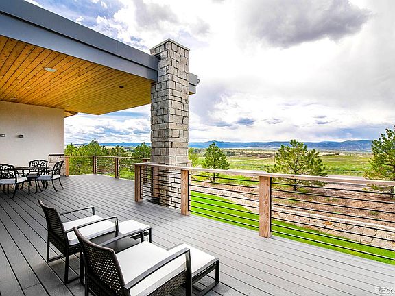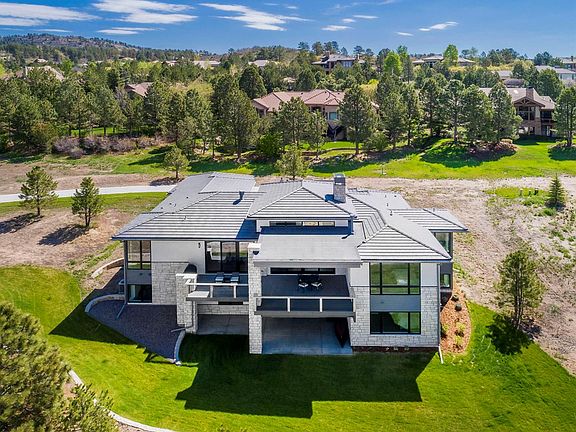 The perfect alternative to new construction! Avoid the time, expense and headache. Built in 2021, this residence is one of four uniquely-crafted custom homes in the Fore collection near the Castle Pines Golf Club in the exclusive gated community of the Village at Castle Pines. This exquisite luxury home embodies Colorado living and ready for immediate occupancy. Positioned to optimize the unparalleled surrounding nature, the home boasts extraordinary mountain views and enviable sunsets over the pine tree tops from a large covered balcony and back patio. The location offers both privacy and convenience, situated just through Gate #3 with quick access to both Castle Pines Parkway and I-25, and a stone’s throw from the Castle Pines Golf Club and Country Club. The architecture of this spacious 5-bedroom 7-bath home with a 3-car garage reflects sleek modern living done in a nature-inspired neutral palette with rustic Colorado touches like the exterior stone façade, interior stone fireplaces with natural wood hearth, and warm-toned wood floors throughout the home. High-end finishes and touches dominate each space, leaving no detail spared from the open seamless chef’s kitchen with white and black marble countertops and gourmet stove to the gorgeous fireplace surrounds. The open and thoughtful floorplan includes the highly sought-after main floor en suite bedroom with oversized walk-in closet and generously-sized guest bedrooms. A secluded office on the opposite side of the main floor makes working from home especially appealing and easy to schedule an afternoon round of golf. An equally well-designed walkout basement with beautiful wood flooring offers ample space for entertaining guests, including a bar with wine storage, plenty of room for a workout space and additional guest bedrooms, all with large windows. LIV elevated in Castle Pines!