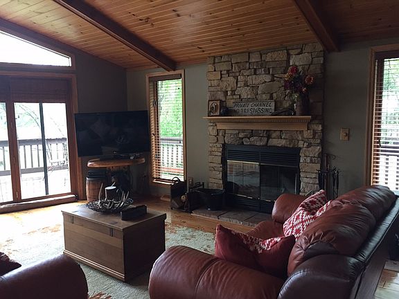 Big Roche-A-Cri Lakefront home! 2 bedrooms, 2 Bath home has open concept living area, refinished hardwood flooring, huge wrap around deck that has recently been stained, full basement w/Bilco door, and 2 car garage with new windows and exterior door! Living room has wood burning fireplace to keep things cozy. New aluminum stairway to lake along with aluminum pier and built in bench. New roof on house and garage. This home has been updated and ready for you to move right in!