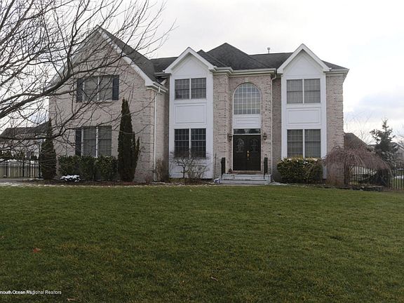 Impressive! Upscale and upgraded 4 bedroom, 2.5 bathroom full brick-front colonial home set back on approximately 1/2 acre property. Lovely and inviting two-story entry foyer. Gleaming hardwood flooring throughout main floor. Formal living room and dining room with decorative pillars and moldings, and tray ceiling. Warm eat-in kitchen with granite counter-tops, center-island, tiled backsplash, and 42'' maple wood cabinetry with crown molding; sliding door leads to patio. Two-story cozy family room. Spacious master suite with sitting area and walk-in-closet; full bathroom attached with large tub, shower stall, and his and her sinks. Full, partially finished basement with tall ceiling. Wrought iron fencing, and much more!