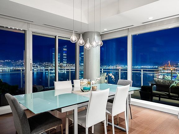 Exclusive sophisticated oceanfront living at award-winning 2 Harbor Green in Coal Harbor.With only 2 units on this floor,the spacious&bright home is at the perfect height;high enough to offer far reaching stunning 180°views, incl Stanley Park,Lions Gate Bridge&2nd Narrows Bridge;yet still has a very intimate feel with the water and greenery.Enjoy sunrises and sunsets from the large private terrace and tranquil water vistas from every main room.Interiors offer designer custom millwork and upgrades,and is in immaculate move-in-ready condition.Rare features:a private 2 car garage with two EV chargers, an extra large parking stall,and 2 concrete storage rooms(~260sq.ft., perfect for downsizers).World class amenities: hotel-style lobby,24hr concierge,indoor pool,gym,guest room,virtual golf etc.