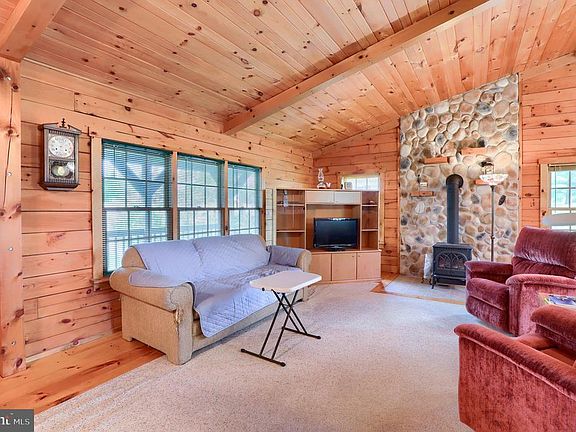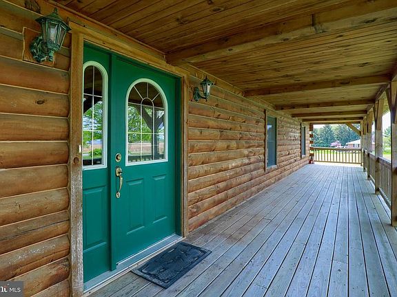 Enjoy one floor living in this stunning log home with open concept floor plan set on large lot surrounded by beautiful country and farmland views. Home features cathedral ceilings, sky lights, and hardwood flooring. Covered porch and deck are ideal for spending time in the peaceful outdoors, overlooking the sizable yard. Spacious 2-car detached garage and shed provide additional storage space as well as the large, unfinished basement. New roof on house and garage.