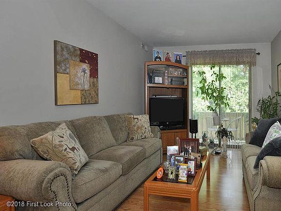 Pristine updated 2 bedroom single level condo in most desirable section of this gated community with beautiful view of wooded acreage. Hardwoods throughout including bedrooms. Great Room with sliders to deck overlooking park-like grounds. Master bedroom with walk-in closet, spacious designer tiled bath and generous sized 2nd bedroom, central air. Well maintained, professionally managed community, 1 assigned parking space plus ample guest parking. Central air, $281/per month HOA fees include heat & hot water.