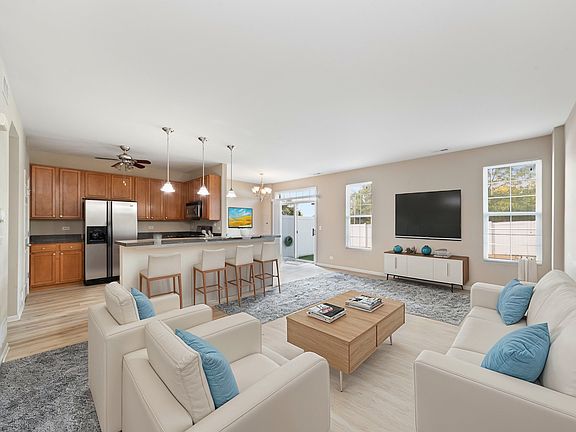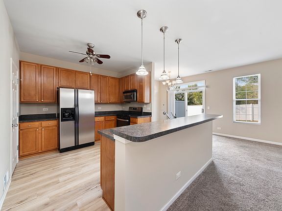 Welcome to this beautifully maintained townhome located in the highly sought-after Sable Ridge community, where residents enjoy access to a pool, clubhouse, and numerous other amenities. This inviting 3-bedroom, 1.5-bath home offers 1,561 square feet of well-planned living space, perfect for both relaxation and entertainment. As you step inside, you'll be greeted by an open-concept design featuring soaring 9-foot ceilings and an abundance of natural light that fills every corner of the home. The modern kitchen is equipped with 42" cabinetry, sleek stainless steel appliances, luxury vinyl plank flooring, and a central island with seating, ideal for casual dining or hosting guests. The expansive family room seamlessly connects to the dining area, where a sliding glass door opens to your own private patio, offering peaceful views of the green space beyond. It's the perfect spot for enjoying your morning coffee or an evening barbecue. Upstairs, you'll find three generously sized bedrooms, each designed to offer plenty of space and flexibility for your lifestyle. The master suite includes an oversized walk-in closet, providing ample storage. The full bathroom upstairs is conveniently located near the bedrooms, and the laundry room adds another layer of practicality to the home's layout. An attached 2-car garage completes this fantastic property, offering additional storage options and convenience. Located in the highly acclaimed Minooka school district, this home combines comfort, style, and community living. Don't miss your chance to make this gem your own!