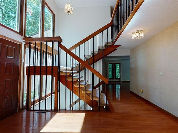 You will love this contemporary home with an abundance of natural light and space! This home features 4 bedrooms and 3 full baths, walk out basement with an office/den area, pool table, patio and large fenced yard! Stunning foyer, floor to ceiling windows with hardwood floors into the family room, breakfast nook with built in desk area, vaulted ceiling in the living room with gas fireplace and wet bar, formal dining room with patio doors to the lovely deck! This home was made for entertaining indoors and out! You can enjoy your morning coffee and beautiful wildlife from the balcony off of the master suite bedroom!