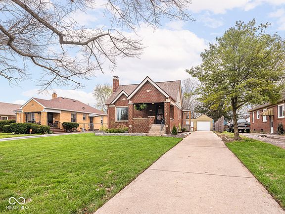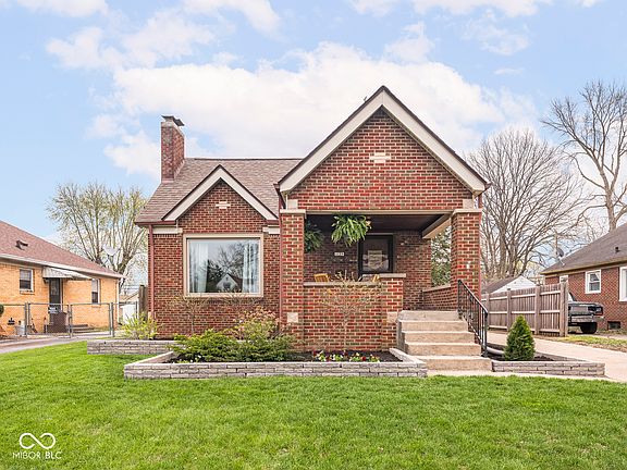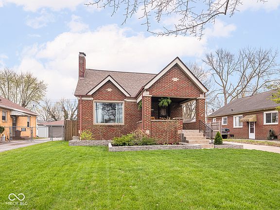 COMMUNITY HEIGHTS // This solid brick bungalow retains much of its original charm with hardwood floors, arched doorways, and a built-in shelving nook. The covered front porch overlooks the quiet, picturesque block lined with a variety of brick and limestone homes set back on deep front yards. Inside, you're welcomed by a spacious living room anchored by a ventless gas fireplace and a large picture window that brings in great light. The kitchen has a cheerful, open layout with bright yellow cabinets, a Viking range, and a vintage-inspired glass block window detail. Both bedrooms feature updated lighting / ceiling fans and generous closet space. The bathroom showcases original vitrolite tile, which was recently resealed in the shower. The dry, well-kept basement adds flexible space for storage and laundry. One side is finished with plush carpet - ideal for a movie room, playroom, or guest space. Out back, a two-car garage sits at the end of a concrete driveway and next to a tidy yard with a designated patio area. A few of the numerous updates include: basement windows, full basement waterproofing with triple sump pump and battery backup, water softener, electric water heater, privacy fence, and the ventless gas fireplace. Located just a few blocks from Ellenberger Park, a few minutes to Irvington's shops and restaurants, and ~12 minutes from downtown.