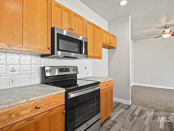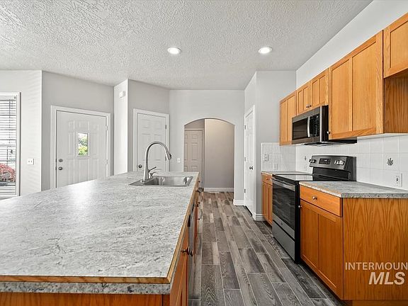 OPEN HOUSE SATURDAY 2-5PM. This townhouse is SUPER cute and priced to sell! In Meridian, very quiet location and convenient to everything. Walking distance to downtown Meridian with eateries, shopping, etc. 9' ceilings, lots of windows - light & bright. Huge kitchen with oversized island bar, large pantry, open to large great room and eating area. Cozy gas fireplace. Nice master bedroom with private bathroom and large walk in closet and ceiling fan. 2 bds, 2 bths, 2 car garage. Gas heat, central air, full sprinklers off of pressurized irrigation for low water bills, no HOA fees! New paint, flooring, SS appliances, new single bowl sink, faucet & many light fixtures. Large laundry room with large counter (could be great office area too). Nice size garage, nice yard - plenty of space for gardening, etc. Cute covered patio area. Very nice neighbors! Has 36" doors, zero threshold for wheelchair ease..... Tremendous income property potential too. Can't find this cute and nice of place in Meridian!!!