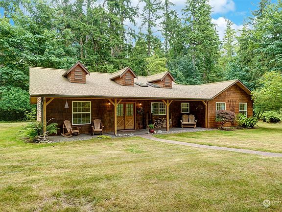 Welcome home to this beautiful island estate. This well-maintained property is hitting the market for the first time. The 3 bedroom/ 2 bathroom rambler is nestled on 5 acres down a quiet gravel road. Enjoy the lodge-like ambiance of the grand fireplace and radiant heating, while soaking up all the light through the wall of windows. Extra touches include vaulted ceilings, soaking tub & built in vacuum. The large, detached garage/shop has a wood burning stove and is big enough for all of your toys and projects. With the low maintenance landscaping, you are sure to enjoy all the benefits this peaceful & serene estate has to offer. Easy 10 minute drive to beaches, restaurants and shopping. Pride of ownership and attention to detail throughout.