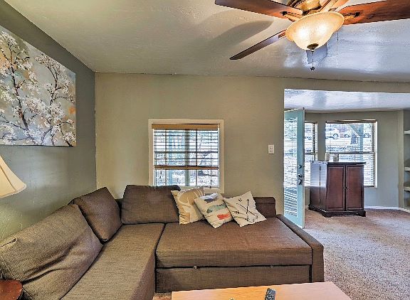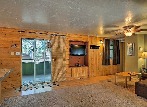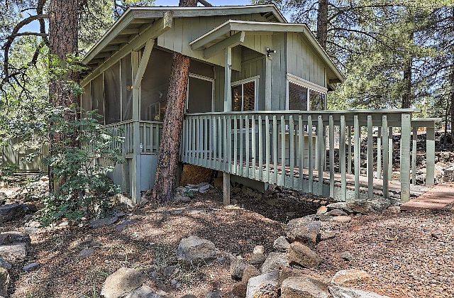 Truly unique, fully remodeled cabin awaits its new owners. This super clean turnkey vacation home sits atop Munds Canyon and has extra RV parking and plenty of mature pines. Updated Carpet and Paint. Home features tongue and groove walls and even tile and rock accents. Plenty of outdoor living space includes a fully enclosed back porch and fenced front porch area for those special nights. This home even comes with the furniture and TV so move in is a breeze. Need a vacation home with charm and class and won't break the bank? This is it.