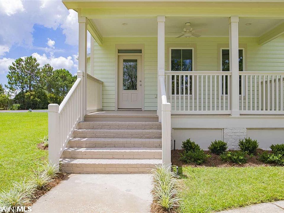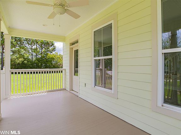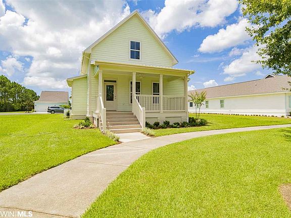 Looking for southern charm? You've found it! Walk up the brick front steps to a covered porch that is over looking a peaceful nature trail full of large trees and greenery. The Cottages at the Green is a gated community with a beautiful pool area, sidewalks, street lighting, and a recreational building that includes a meeting space and fitness room. This home is roughly 2554 square feet and maintains an open concept with 2 main living spaces (one could be used as a flex space/game room on the first floor, 4 bedrooms, and 3.5 bathrooms. There is manufactured hardwood laminate found throughout the downstairs and real hardwood pine throughout the upstairs with tile in all bathrooms. The home has been newly renovated and provides granite counter tops in all wet areas, stainless steal appliances (including a double door refrigerator, dishwasher, single oven, stove top, microwave, and a wine refrigerator), a white picket fence, and a 2 car garage. The home has also been freshly painted on the exterior and interior. Just off of both living areas is the kitchen which has a large pantry, wet bar, bar seating for entertaining, and an attractive ship lap back splash. The Master Bedroom is located on the main floor. It includes an en-suite with double sinks and a custom closet (layout to be decided by the Buyer upon purchase). There are two separate upstairs areas on either side of the home. Side one is home to 2 bedrooms and a bathroom. Each of these spacious bedrooms maintains a built in desk area with a large closet and additional storage space. Side 2 is home to 1 large bedroom with a private bathroom and 2 closet areas. This home has a light and airy feel with large windows and high ceilings and it sits at the end of a cul-de-sac. It is just blocks away from The Foley Beach Express and minutes into the heart of Foley for Outlet Shopping, restaurants, and more!