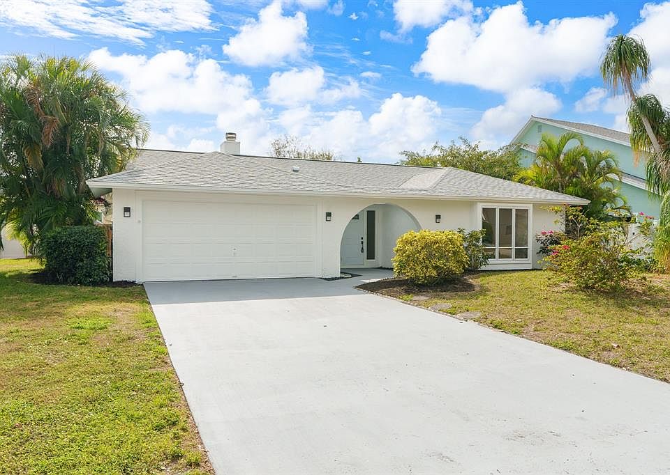 This beautifully renovated home is move-in ready and designed for effortless living! Offering three spacious bedrooms and two stylishly updated bathrooms, the bright, modern interior showcases high-end finishes throughout. The chef’s kitchen features stainless steel appliances, including a refrigerator, stove, microwave, and dishwasher for ultimate convenience. Enjoy year-round comfort with central air, a versatile sunroom, and a private in-ground pool with serene canal frontage. A two-car garage provides added functionality, all within a highly desirable neighborhood. Recent upgrades include a pool remodel in 2024. Don’t miss this incredible opportunity!