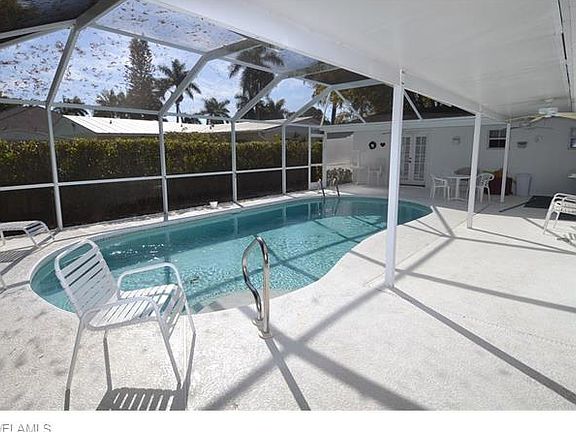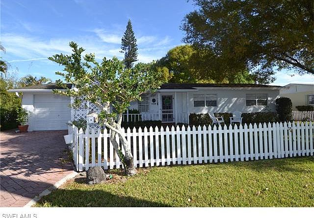 They lived happily ever after!! Charming 3 BR / 1.5 Bath ( can be converted back to full bath ), pool home with its iconic "white picket fence", is nestled on Royal Palm drive located in the highly desirable area of Naples Heights. Offering complete privacy with "Nana's secret garden", serenity fountain, and a 13 x 17 outdoor workshop complete with electricity. Enjoy your lazy days relaxing on the screened lanai with an ice tea and a good book on your very own swing. Indoor features to include tile, wood, and carpet flooring, over sized family room with coffered ceilings, crown molding, plantation shutters and more. Hurry, this ONE wont last.