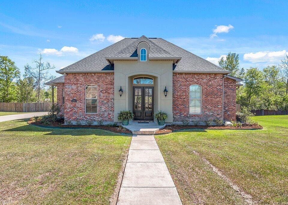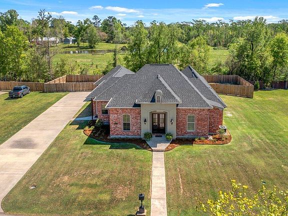 Beautiful custom built French style home in Moss Bluff. Exclusive neighborhood on a quiet dead end street. Wood and tile floors with tall ceilings throughout. Granite countertops with large island and family area in the kitchen. Separate formal dining area. Living room has a gas fireplace and overlooks the private back patio with a built in grill. Property being sold as-is. No repairs by seller. All measurements are more or less.