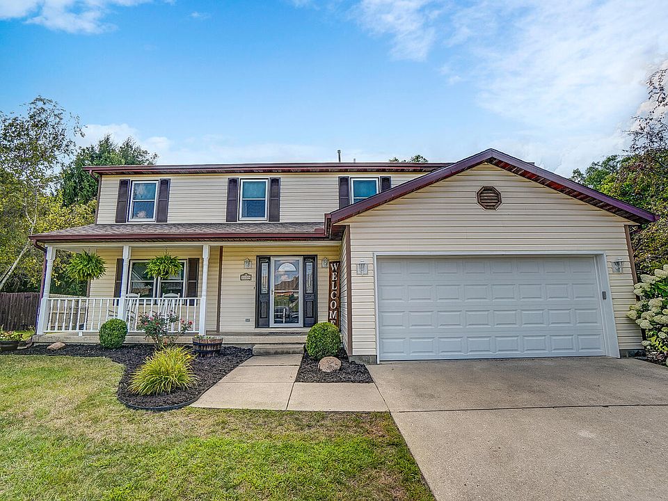 Move-in ready home in Kingsgate Commons. This home features 4 bedrooms, 2.5 baths. One the first floor you will find your living room, separate dining room, kitchen open to family room and a half bath. This home is freshly painted throughout. The kitchen is updated and has granite counters and stainless kitchen appliances including bosch gas cooktop, oven and dishwasher. From the kitchen/family room you can access the back deck. There is a large fully fenced back yard with a storage shed for additional storage. The second floor features the master bedroom and bath, 3 additional bedrooms, full bath and laundry area. Great curb appeal and an inviting porch awaits you!