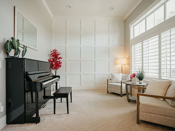 Gorgeous craftsman-style home situated on a half acre corner lot. Attention to detail with high quality craftsmanship and design throughout. Step inside from the large covered porch to the entry and formal living room with wall paneling and extra-tall ceilings. The great room, with expansive windows, offers an abundance of natural light and outstanding views of the mountains. The spacious kitchen features custom cabinetry, a large pantry, and built-in china cabinet. Stainless steel appliances including a gas range and double wall oven with microwave combo. Step outside the dining area to the covered patio and spacious backyard. The main floor primary suite features a soaker tub and separate shower, double sink vanity, built-in linen storage and large walk-in closet with organizers. The fully finished basement is the ultimate retreat offering a large sitting area with an included custom sofa and built-in cabinets. The theatre room comes with all equipment and 8 theatre chairs. The added convenience of a home gym with all equipment included. There is a second kitchen, laundry room, and a convenient walk-out leading to the garage making the area a potential mother-in-law apartment. Beautiful plantation shutters and new carpet throughout. New dishwasher and newer water filtration and softener. Security system included.