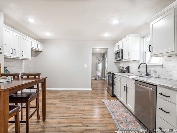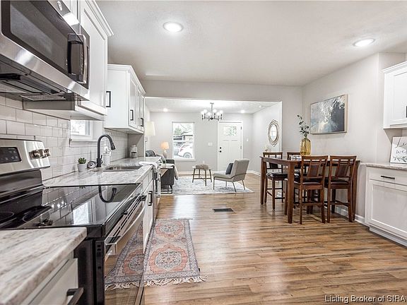 Wowzer… so much cuteness in one house! This home is located just minutes from Downtown Jeffersonville. It is an adorable 3 bedroom home with a perfect open floor plan! Large eat-in kitchen with tons of upgrades; beautiful white cabinetry, granite counters, tile backsplash and stainless appliances. Did I mention the 2 full bathrooms with stunning tile work? Also, there is a large rear yard with alley access for off street parking.