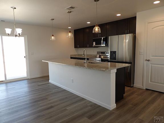 Your Holiday Home is Ready! Make this holiday season extra special in your brand-new Pueblo West home. Be the first to call this stunning 3-bedroom, 2-bathroom home yours! Construction is complete, and this Pueblo West gem is ready to welcome its first owners. Experience modern luxury in one of Colorado's most sought-after communities. The spacious living room is flooded with natural light and features elegant luxury vinyl plank flooring. The heart of the home is the stunning kitchen, boasting soft-close cabinets, drawers, New appliances complete this culinary haven. Enjoy the comfort of plush carpeting in the bedrooms and the modern touch of can lighting throughout the home. Don't miss this opportunity to make this house your home. Priced below recent appraised value. Schedule your showing today!