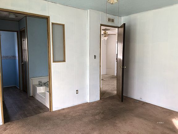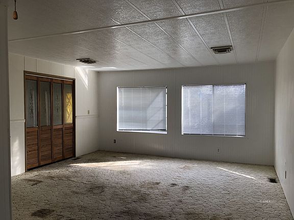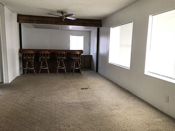 This 2 bedroom 2 bath with 1440 sq ft. has a wonderful split floor plan. Family room has a gas stove & large wet bar. Plus a living room, dining room with built-in, and laundry room. Over 1/2 acre with a seasonal creek, 2 car garage, storage shed, room for toys. Primary has garden tub plus shower, walk-in closet & private deck with peek-a-boo lake view at the back of home. Large front deck and ceiling fans throughout. This is on a permanent foundation. Chain link fencing. Home has been a rental and seller will give a flooring allowance.
