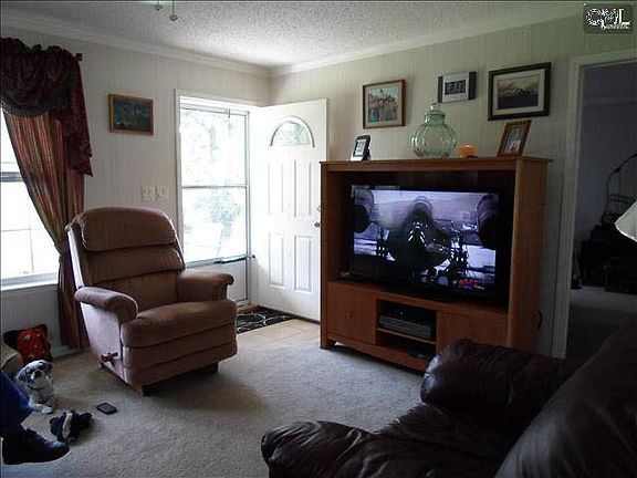 Very nice double wide home with brick crawl space, front porch, 3 bedrooms/2 baths (split plan), den & kitchen open floor plan, Man Cave (can be used as a garage/workshop), storage shed in back yard & 74 ft of water frontage with dock!
