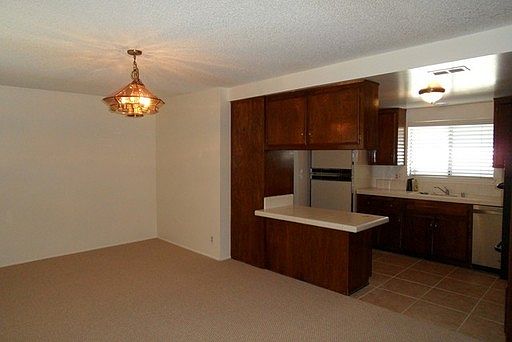 Lovely 3-Bedroom, 2 Bath, Single-Story Home Super clean, comfortable home in great residential neighborhood; fresh paint and new carpet; central air conditioning; nice kitchen with breakfast counter, dishwasher, 5-burner gas cooktop and refrigerator included; big dining area; separate laundry room with lots of cabinets, and washer and dryer included; large living room with fireplace and slider to back yard; two good-size bedrooms with roomy closets, plus a master bedroom and bath; fenced back yard with large patio and area for a garden; attached two-car garage; sprinklers back and front and gardener provided. Sorry, no pets.