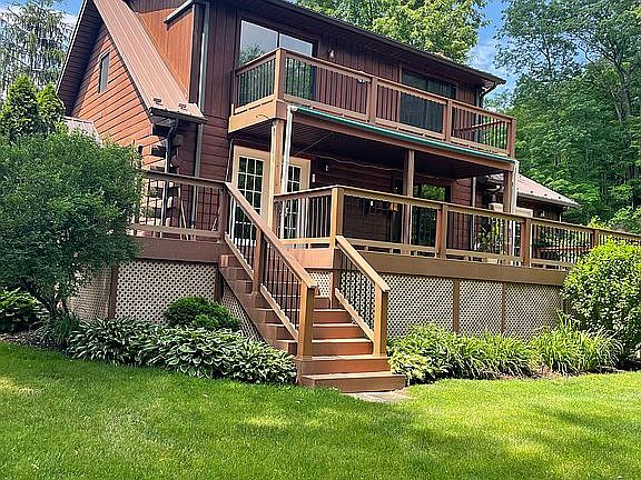 Your lake oasis is awaiting your arrival! Cabin located close to everything! 3-4 bedrooms, 2 full baths with custom tiled showers, loft with bunkbeds, huge kitchen and the most amazing perennial landscaping that takes minimal work to maintain. And no deed restrictions!! On the property you will find two large garages and a shed, lots of parking available as well. Enjoy the best "secret" swimming hole on Raystown Lake, only a five minute drive. 15 minutes to Seven Points boat launch along with multiple playgrounds and hiking trails. After a long day on the lake, come back to your wonderful cabin and enjoy some smore's or fishing on your stream just out the back door.