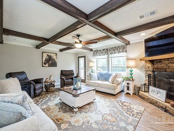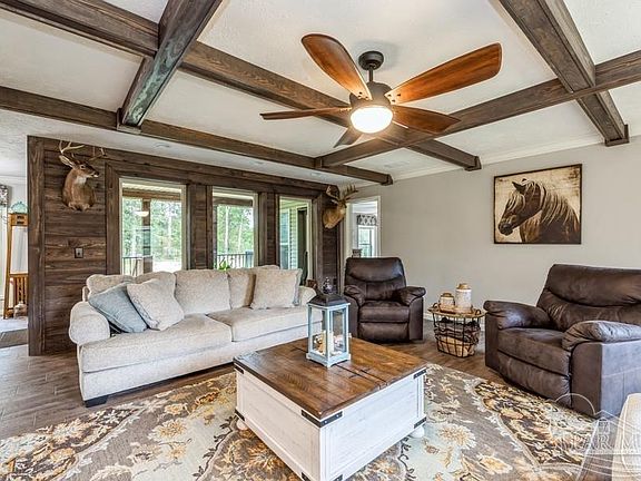 This beautiful Sun Valley series "manufactured home" is only two years old and sits on 7.5 acres. The seller's have spent a little over $6,000 for brick skirting; The electrical has been put underground - $1,000; 40 x 60 pole barn - $30K; A huge 30 x 30 carport was recently added for your vehicles - $20K. Gutters have been added - $1,000. Extra blocks have been added underneath with extra tie downs for security. You also have a 9 year warranty for termites. This is a beautiful home. You will also find two fruit bearing Satsuma trees, a grapefruit tree and blueberries. You will also have your own "chicken coop"! If you hunt, this is where you want to be. There are turkey, deer, squirrels and rabbits. If you like kayaking there are at least 4 business within 4 - 5 miles from this home. Don't wait..make an appointment today to see how wonderful and peaceful this home is.