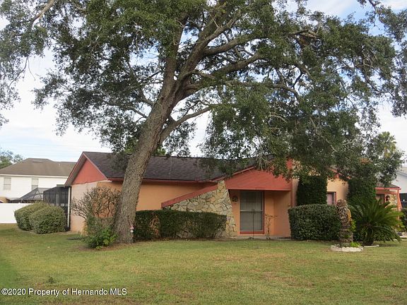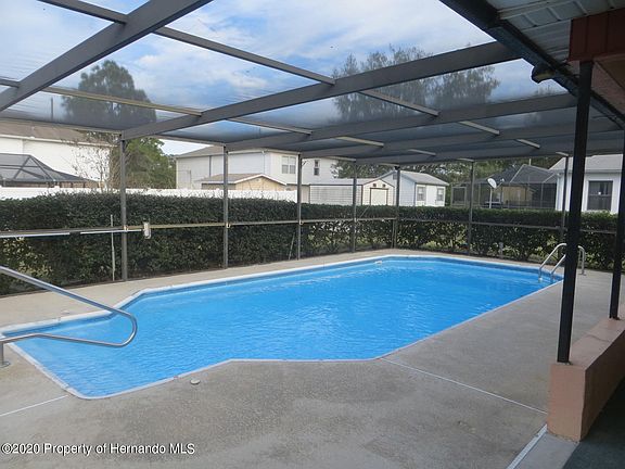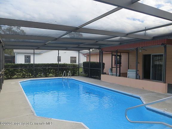 Just Listed! Come take a look at this 2 bedroom POOL home near shopping, hospitals and Weeki Wachee Springs. New roof just installed (Nov 2020), interior freshly painted, wood kitchen cabinets, and wood floors in main living area. Brand new W/W in both bedrooms. Double set of sliders off Living Room/ Dining room combo and Master Bedroom to huge lanai and screened pool cage. Partially fenced yard with large shed for all your tools. Neat and clean and move-in condition!