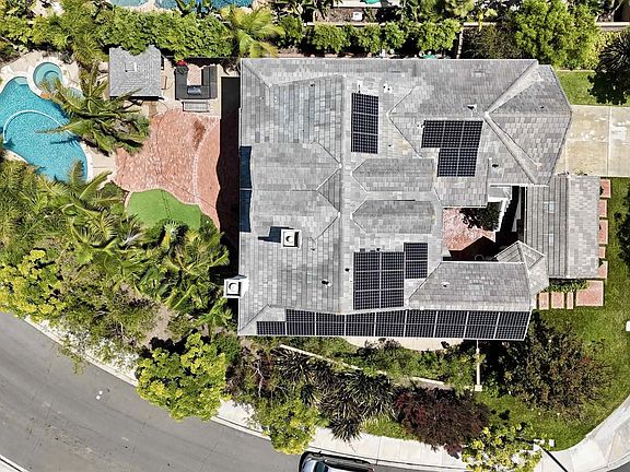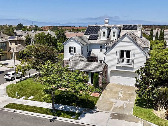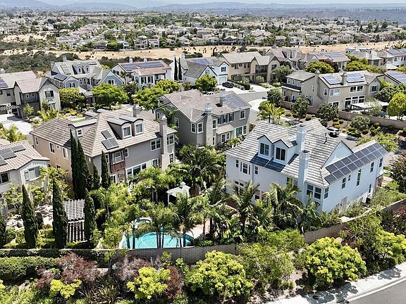 Located on one of Derby Hill’s premier lots, this coveted plan 3 features a 3rd level Loft/Media/Playroom. As you enter the charming courtyard and continue into the main level, step inside to find an inviting open-concept layout that effortlessly combines living, dining, and kitchen spaces. Tall ceilings and large windows flood the interiors with natural light, enhancing the home's airy and expansive feel. At 4,598 square feet this residence boasts a spacious layout that includes not only 5 bedrooms but also a dedicated office, exercise room and a giant playroom/media room. The third car garage is currently set up as an additional gym and workshop. The beautifully landscaped backyard is ideal for outdoor living and entertainment. With a pool/spa, built in BBQ, Gazebo, lush greenery, and plenty of space for gardening or play, it’s an outdoor retreat where you can unwind and enjoy the San Diego climate. Additional features include expansive 33 panel solar system with Tesla Powerwall, new AC units (Trane), Furnaces and Ductwork in 2022, Upgraded Subzero refrigerator and Wolf Range, speakers throughout the house and backyard. All conveniently located walking distance from Ocean Air Elementary School, Ocean Air Community Park and Recreation Center, Restaurants, Shopping and so much more.