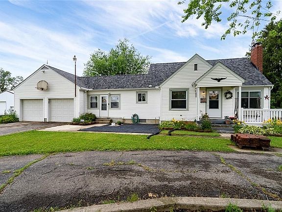 Looking for a little peace and quiet? That's exactly what you will find in this adorable 4 bedroom, 2 bathroom cape cod on an over 4 acre lot. The main level features a large master bedroom, bathroom with walk-in shower and HUGE walk-in closet. The master bedroom walks out to a beautiful vinyl deck overlooking the back of the property....a great place to enjoy that morning cup of coffee. Also, on the first floor you will find another large bedroom, full bathroom, living room and dining room. Lovely galley kitchen with plenty of storage space and stainless steel appliances. Speaking of space, the home also boasts a full basement, an oversized 2 car garage with third door and a 40 x 30 foot pole barn. New well pump 2016, HVAC 2015, water softener 2022, roof 2020, kitchen and both bathrooms 2022, vinyl plank flooring 2022, interior paint 2022. All this home needs is you!