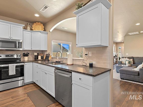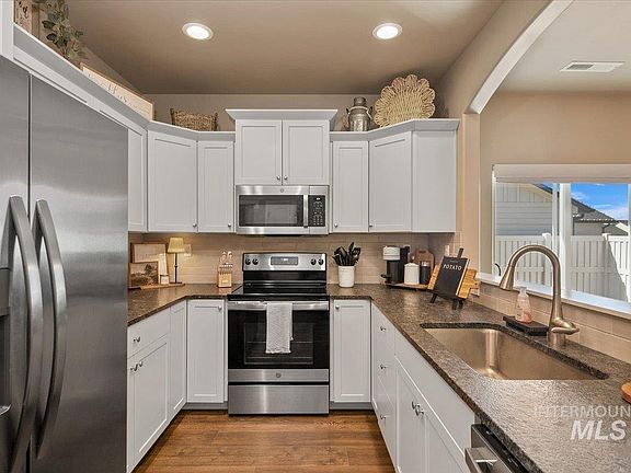 Welcome to this gorgeous single-level home so impeccably cared for that you will mistake it for brand new. With charming modern appeal, the interior will wow you. Open and airy design that is flooded with natural light and boasts many upgrades. Some of our favorite features include the quality painted cabinetry, stunning leathered granite throughout, designer lighting, paint, and flooring, SS appliances, full tile backsplash in the kitchen, walk-in shower with floor-to ceiling tile, dual sinks in the primary bath, and linen-styled custom window treatments. Oversized home site with no back neighbors, full landscaping, vinyl fencing, abundant concrete work, including 2 patios, built-in fire pit, an additional pad for hot tub or shed, and also space for garden beds. Incredible location just minutes to freeway, shopping, restaurants, and entertainment. This home truly has it all!