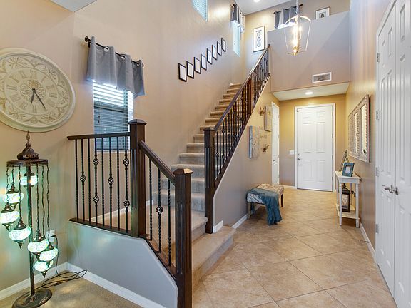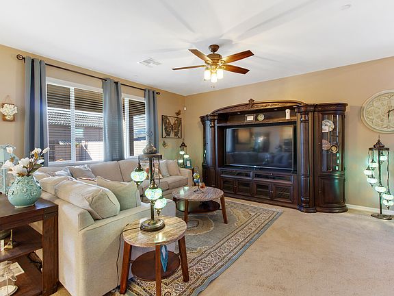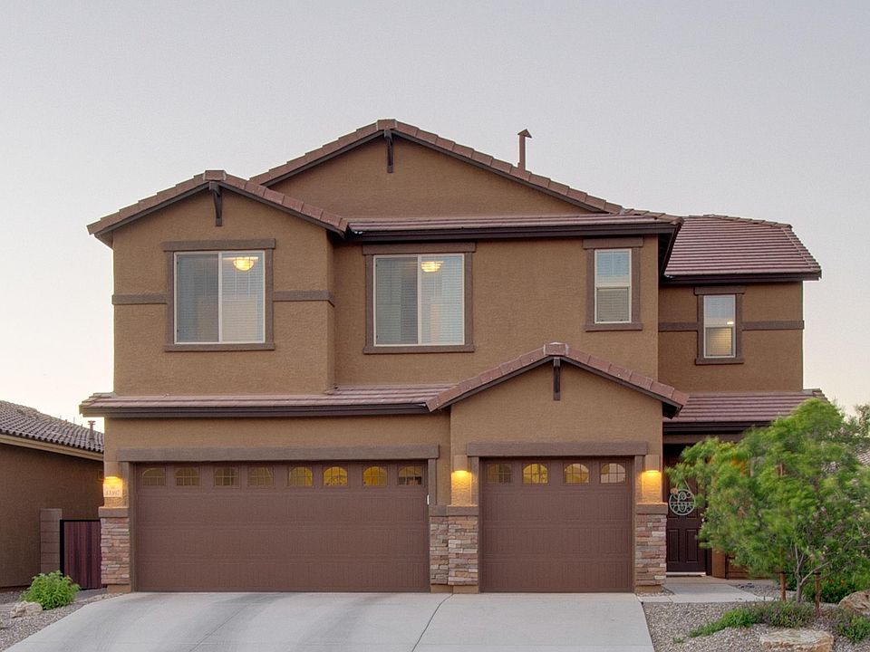 This Exquisite Dream Home in Mountain Vail with Sunset and Mountain Views features 4 bedrooms, a downstairs den or office, upstairs loft, 2.5 bathrooms, a 3-car insulated garage, beautiful stone elevation; high ceilings with tall windows and doors; upgraded lighting throughout; and a fully-finished backyard with paver patio and lighting. The gorgeous gourmet kitchen wows with a farmhouse sink, granite counters, subway tile backsplash, 42'' cabinets topped by crown moulding, stainless steel appliances including gas cooktop and an amazing center island. The bathrooms are also upgraded with granite counters and tile backsplash. There's so much to love about this home. Come. See. Stay!