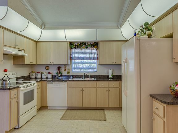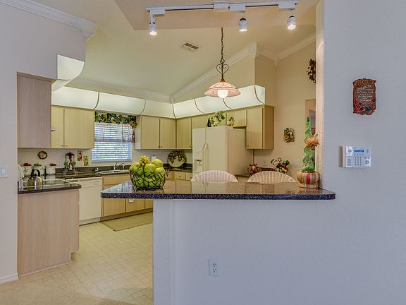 Charming fully furnished 3/2/2 in Royal Highlands. Crown moldings, updated light fixtures and fans add to the charm. Roomy kitchen w/pantry and lots of counter space. All appliances convey including washer and dryer. Living/dining room combo all ready for you with mounted TV to relax and enjoy. Master bedroom with large walk in shower. Back patio with roof all ready for screens. Garage equipped with nice workbench and a lawn mower for your new yard. Screens for the garage too! All you have to do is move in and unpack.