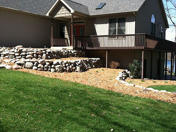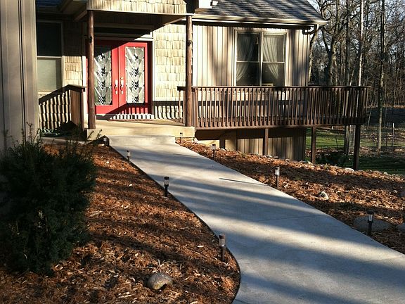 Enjoy lake living and still have your privacy. Wildlife haven! 150�¢?? of frontage with 1.7 wooded acres on Upper Crooked Lake, Delton, MI. On a private road with only 3 other houses. Upper Crooked Lake is a 49�¢?? deep, 743 acre all sports lake. 4 Bedrooms (2 Masters) 3-1/2 Baths Family/Kitchen Storage and/or workroom Utility Room 2 car garage w/bonus room Main floor open Living Room/Kitchen/Dining Ranch walkout to lake level with approx. 3600 sq. ft of living area which includes lower level walkout with 8�¢?? ceiling throughout and 14�¢?? cathedral ceiling on main level. Plus additional bonus room above 2 car garage. Bonus room has 4 skylights and 1 window. Central A/C and natural gas. 4�¢?� well, 2 tank septic with drain field, 2x6 walls, and energy efficient construction throughout. Large wrap around wood deck. Poured pebble patio at lower level. Professionally landscaped. Dock included. The upper master bedroom, closet and bath encompasses the entire end of the home with lake view. Master walk in closet conveniently hosts washer/dryer. Master bath has 2 person walk in shower with Italian stone tile, 2 sink granite counters and lots of cupboards for storage. Large open main level living. Living/Dining/Kitchen completely open to each other. Kitchen has granite with a breakfast bar and pendant lighting and custom cabinets. Stainless steel appliances. Custom beveled stain glass doors open to the entry way. Entire front of house (facing lake) has 94�¢?� glass doors or windows. Custom drapery included. Gas fireplace. Hickory wood floors through out main level. Main floor has additional bedroom, currently being used as office and another full bath with skylight. Lower level hosts 1 guest (master) bedroom suite, with full bath and 10x6 walk in closet and 1 bedroom that is 9.4�¢?? x 15�¢?? with large closet. Both have daylight windows. Utility room houses all mechanicals, including water softener and hook up for back up generator. Large work room/storage room. Family room/kitchen has 3 patio doors opening to lower level patio. Lower level has all new fixtures, lighting, carpet, tile, paint, ceiling, and trim. Reserved: Refrigerator/Stove and washer/dryer. Drapes in lower level family/kitchen area and guest suite bedroom. Neighborhood Description Private road with large lake lots and lots of privacy.
