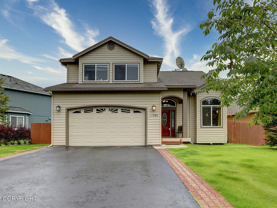 Welcome home to this beautiful house in the coveted Terrace's subdivision. Offering fantastic mountain views, high ceilings and large windows allow for the sun drenched living areas. The unique and spacious designed open concept kitchen with steel appliances and custom cabinets is situated perfectly off of the second living room and breakfast area. The spacious master suite w/ spa bath is a sereneretreat and has a large walk-in closet. There is plenty of room for everyone to enjoy. Outside, the back deck offers a seating area for enjoying Alaska's delightful summers with space for al fresco dining. This lovely home offers inspiring spaces for enjoyment outside and in, whatever the season or weather. Enjoy 11399 Tulin Park Loop.