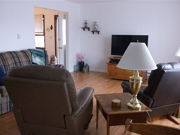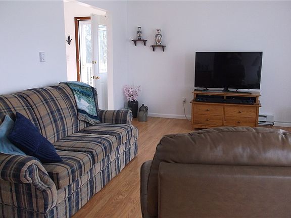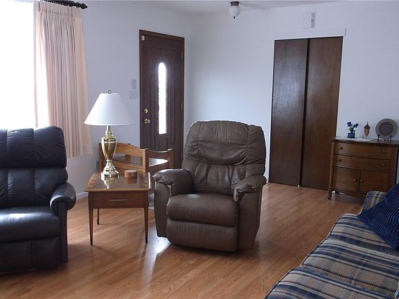 Immaculate move in ready ranch on level lot. Large living room. Spacious open concept kitchen/Dining room area. Beautiful Pergo flooring through out the main level. Large deck on the side of the house with gorgeous view. Very large basement that could be finished into a family room or game room. Electric heat with a thermostat in each room. Basement was water proofed in 2004 with Champion interior french drains. Newer 200 amp electric service.Newer over sized hot water tank. House located on beautiful level almost 1/2 acre lot. 24x12 Storage shed included. Very private quiet living!