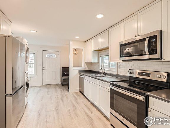 Charming remodeled 2 bedroom 1 bath home in old town Dacono. This home was completely remodeled down to the studs in 2018. New Siding, Windows, Doors, Drywall, Cabinets, Fixtures, electrical, heating, plumbing, and A/C added. New roof 2019. Detached garage south facing to alley and large concrete driveway with adjacent RV Parking area. There is a 100 sf "root cellar" accessible through the trap door under the banquet table and benches in the kitchen. the HW heater & Furnace are there, only access with Listing agent present. All information is deemed accurate, but Buyer to verify. Listing Agent is the Seller and has never lived in the home.