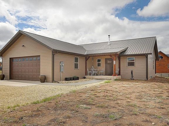 Welcome to this lovely home boasting an open floor plan, vaulted ceilings, and mesmerizing mountain views. Situated in a serene location, this property offers the perfect blend of modern amenities and rustic charm. From the inviting great room with a wood-burning stove to the gourmet kitchen featuring granite countertops, this home is designed for both relaxation and entertainment. Enjoy the fresh mountain air from the covered front and back porches, ideal for morning coffee or evening gatherings. With three bedrooms, two baths, and a two-car attached garage, this home provides ample space for comfortable living. The finished garage offers flexibility for use as an additional multi-purpose space, making it perfect for hobbies or storage. Located in the charming town of Silver Cliff, shopping, dining, and a rural clinic are readily accessible. A scenic drive provides access to larger cities and their amenities. The area is full of fun adventures for the family, such as white water rafting, fishing, hunting, camping, hiking, and rock climbing. Plus, Silver Cliff is a Dark Sky community, so touring the clear night skies is a breeze! Call today to schedule a tour!