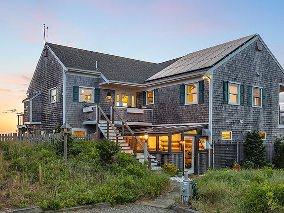 Surround yourself with a spectacular sweeping view of Cape Cod Bay. Perched on a secure bluff facing due west, be treated to unobstructed magnificent sunsets accompanied by the sounds of the bay. You will be enveloped in the privacy and natural beauty that is unique to Lieutenant Island adjacent to the Audubon preserve. With the maximum allowable solar power, (no electric bills) a greenhouse, and the cleanest well water on the Cape, you are instantly and happily off the grid. This house has to be experienced to be fully appreciated. Coming through the front door the view is immediately captivating. The main living area connects seamlessly with the large deck and 180 degree water views. Take your private stairway to the beach with pristine sand flats and wild Wellfleet oysters. All bedrooms have water views. The ground floor features a sunroom entryway, a large family room/gym, walk through pantry, and an indoor SwimEx hydrotherapy pool. Extensively remodeled by Stello Construction, this sophisticated yet low maintenance turn-key home allows you to relax and recharge in a healthy and private setting.