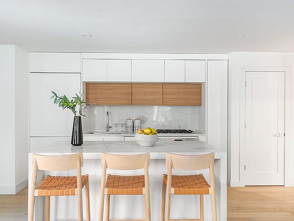 Bespoke interior finishes of note include PID oak flooring, matte white custom kitchens with Liebherr, Bosch and Wolf appliances, and XO wine fridge and separate vented range hood. The spa-like baths at 114 6th have floor to ceiling tile, radiant heated floors, two drawer custom vanities, deep soaking tubs and Dornbracht fixtures. Each home also comes with a washer/dryer.